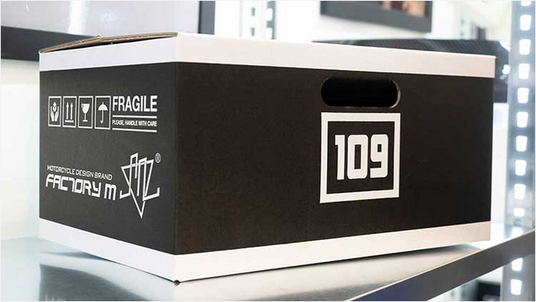 パッケージボックスはバイクライダーにとって馴染み深いヘルメットボックスからインスピレーションを得てデザインされています