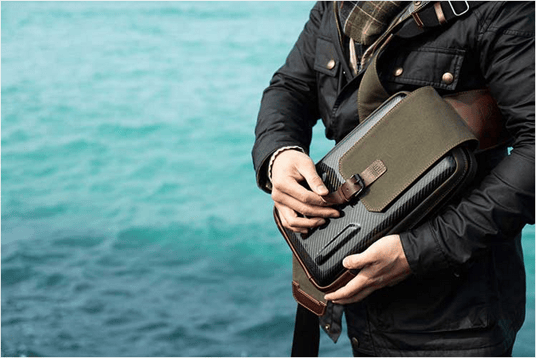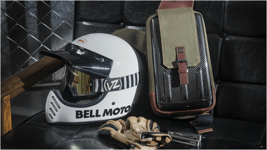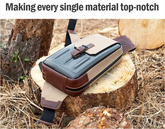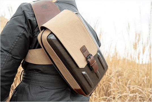 スリングバッグのハードシェルは本物のカーボン製で機能性と時代を超越したデザインを兼ね備えています