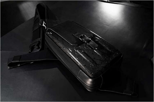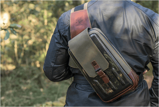 109カーボンスリングバッグは高級バッグのデザインと修理で35 年の経験を持つ熟練の職人とのコラボレーションによって作られました