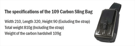 僅か109gのカーボンスリングバッグは身体的負担を感じる事無くいつでも楽に持ち運べる非常に軽量なアイテムです