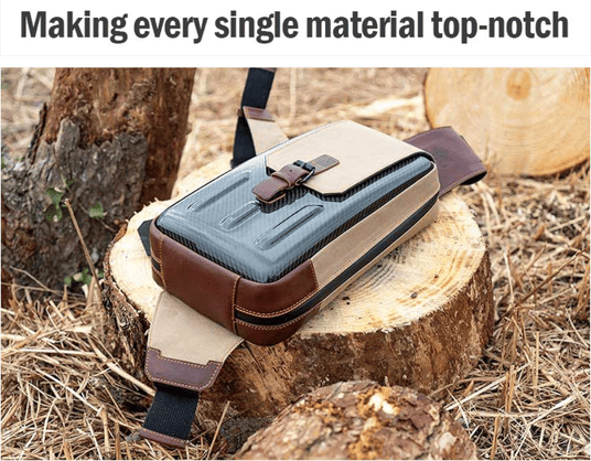 カーボンスリングバッグはYKK防水ジッパーとYKKバックルを備えています