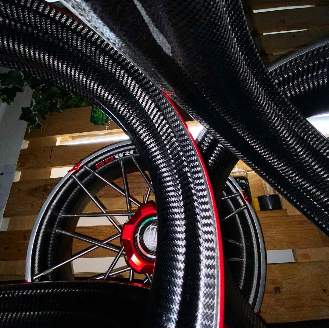 カーボン構造がリム内面を覆いホイール重量に影響させる事無く剛性を上げます