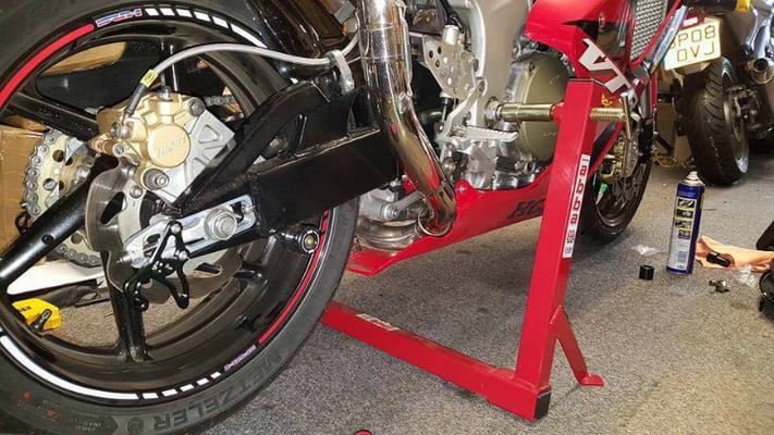 ※ピンタイプのスタンドはアクスルの損傷とフォーク底部に亀裂が入る可能性があります