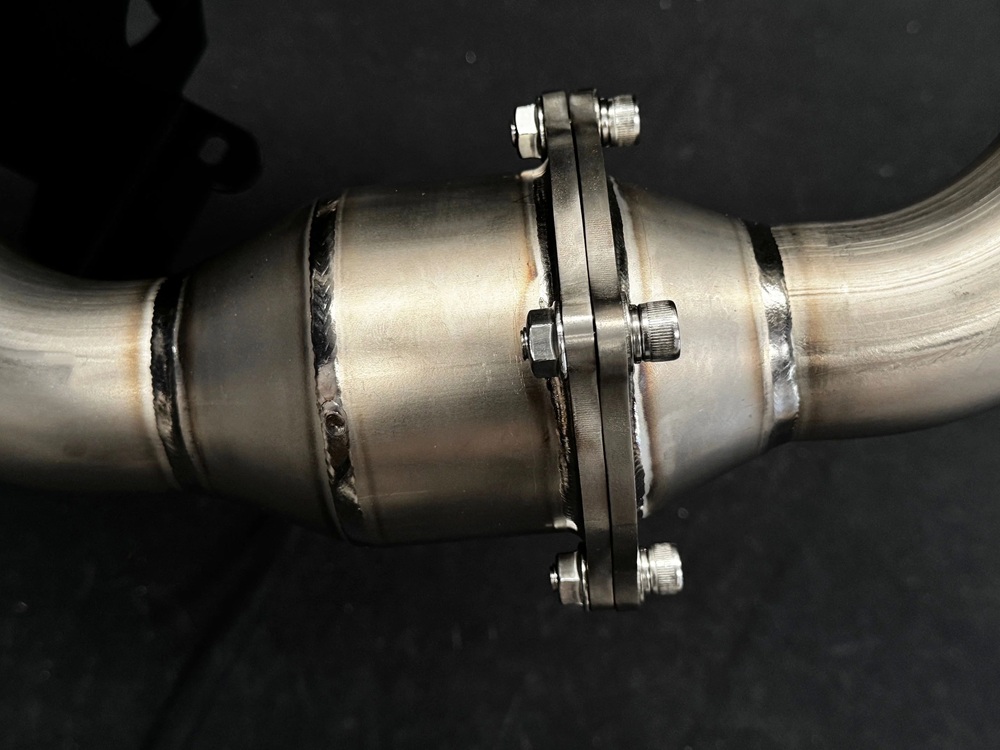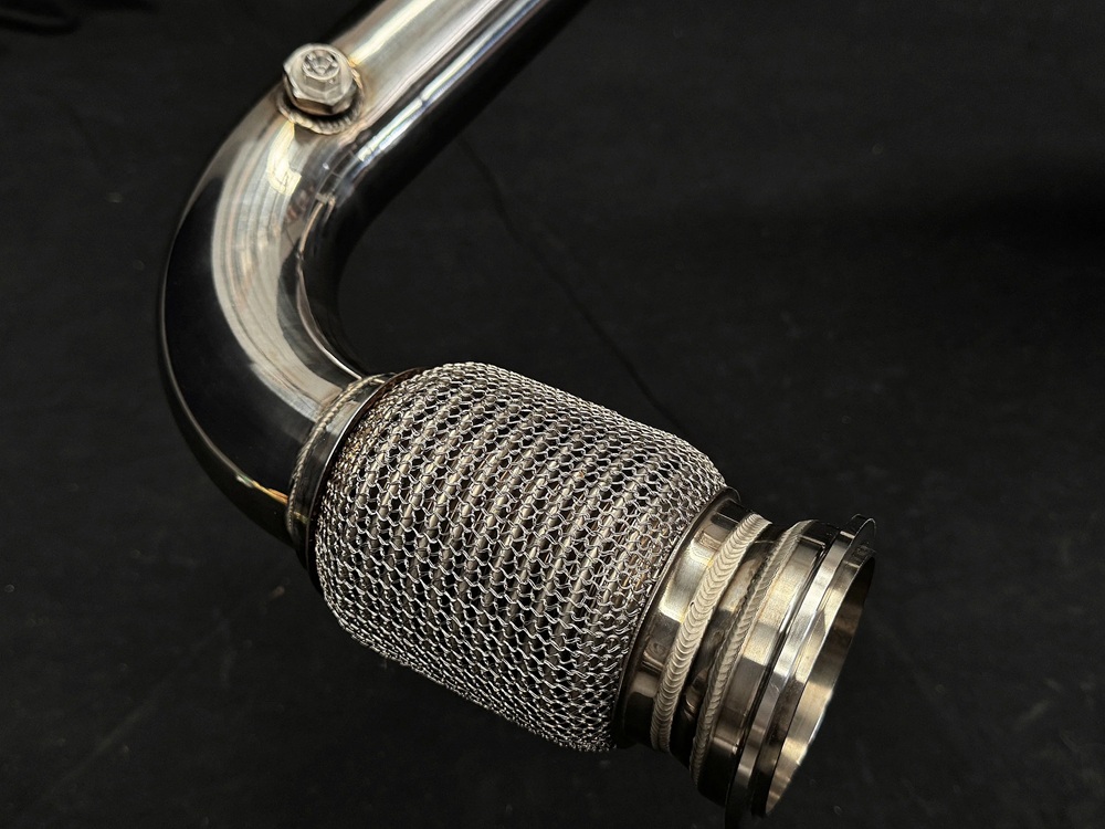 フレキシブルカップリング付きミッドパイプを介してターボチャージャーに接続されます